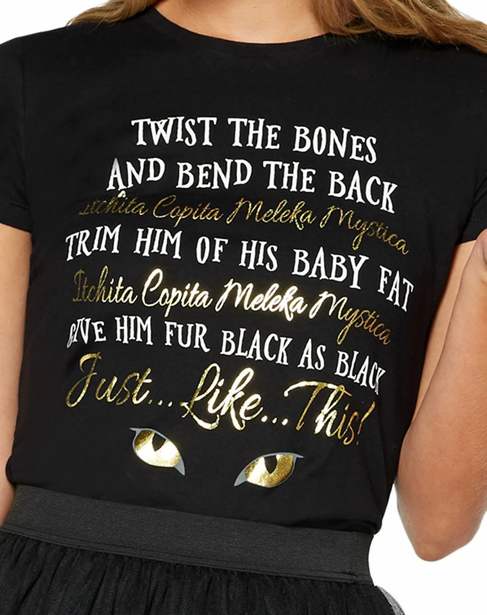 Share your love of all things witchy with this spellbinding Hocus Pocus shirt! Featuring the famous spell that turned Thackery Binx into a cat for centuries, this wickedly awesome shirt is sure to put a spell on everyone at your next Halloween party!