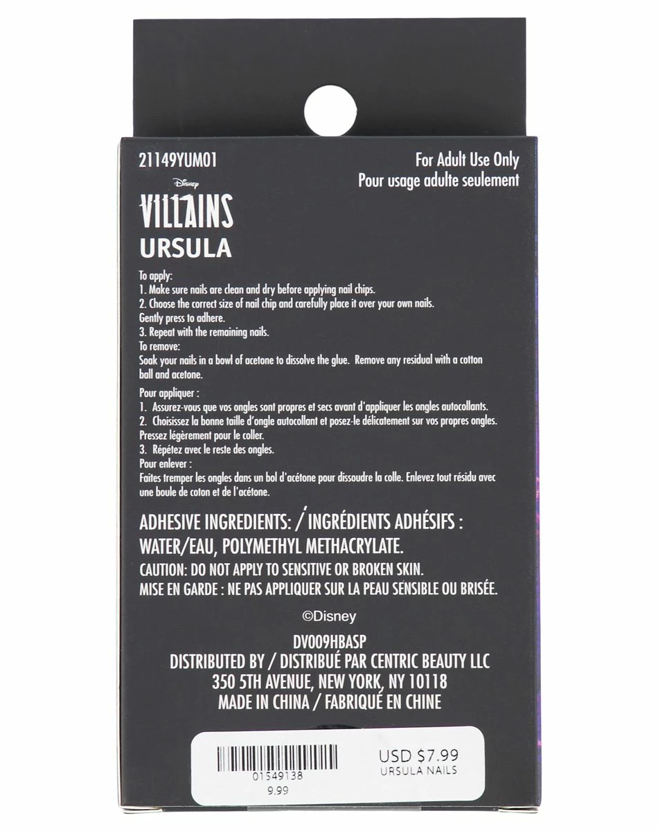 Adorn your nails like your favorite sea witch with these official Disney Villains Ursula Press On Nails! These press on nails feature Ursula’s face and related designs and colors that will look amazing on any The Little Mermaid fan.