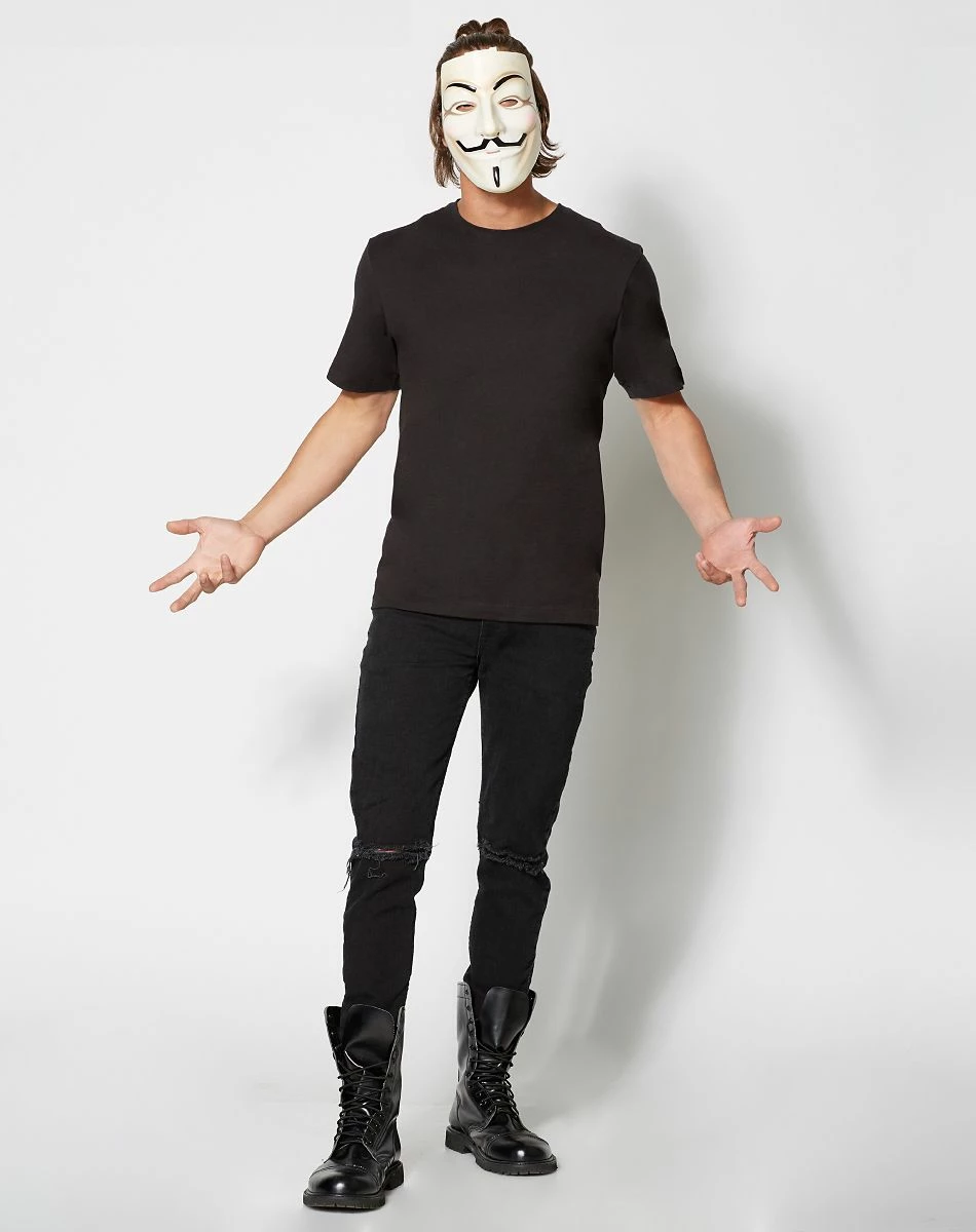Let chaos prevail in this officially licensed V is for Vendetta Mask! Add the hat and the wig (both sold separately) to complete the disguise. Rebel against tyrannous dictatorship this Halloween, chanting “Remember, remember, the fifth of November…”
