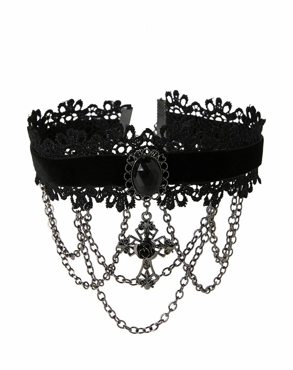 Put on this awesome cross lace choker necklace and add a vampire vibe to your Halloween costume. This necklace features chains that dangle from the neck and a beautiful black cross pendant that’ll make you look like a true bloodsucker!