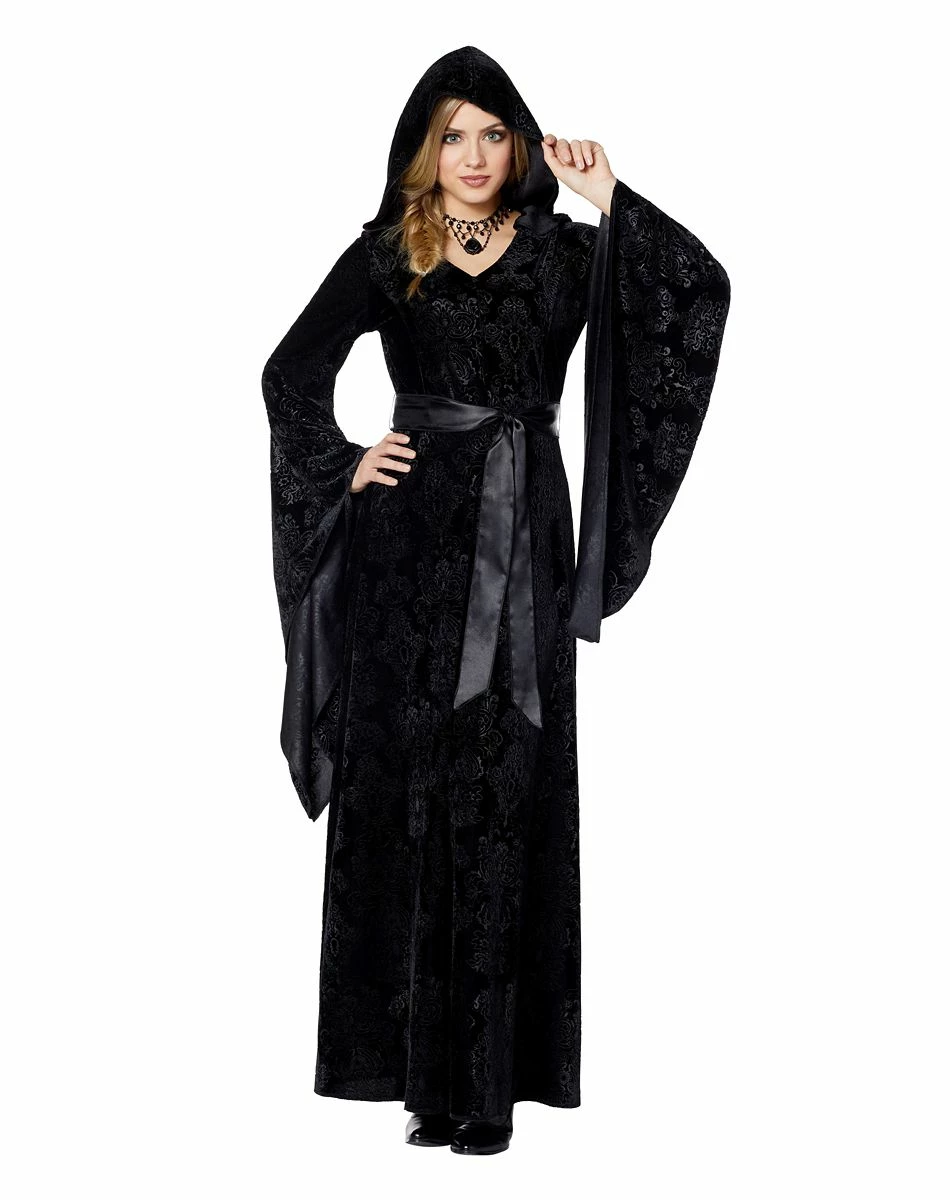 Complete your Halloween look with this velvet hooded robe. The textured velvet material will give you a detail that will have you standing out. Use this robe as the perfect base for any costume this year!