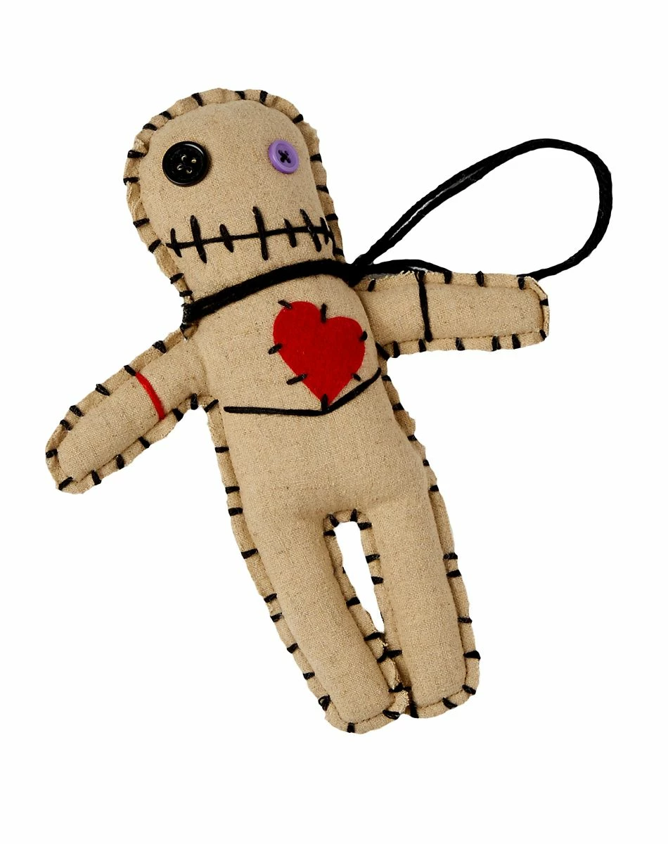 Carry around something that replicates your costume this year! This button-eyed voodoo doll is cute…and spooky!