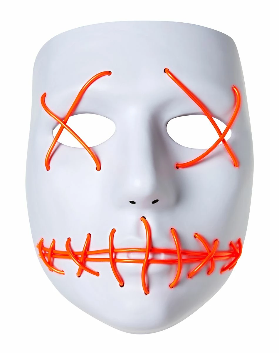 Illuminate the party this Halloween when you decide to rock this White and Red EL Wire Mask. This white mask features red wires that light-up and create a sewn up mouth illusion. Wear this mask this Halloween to show everyone how lit you are.