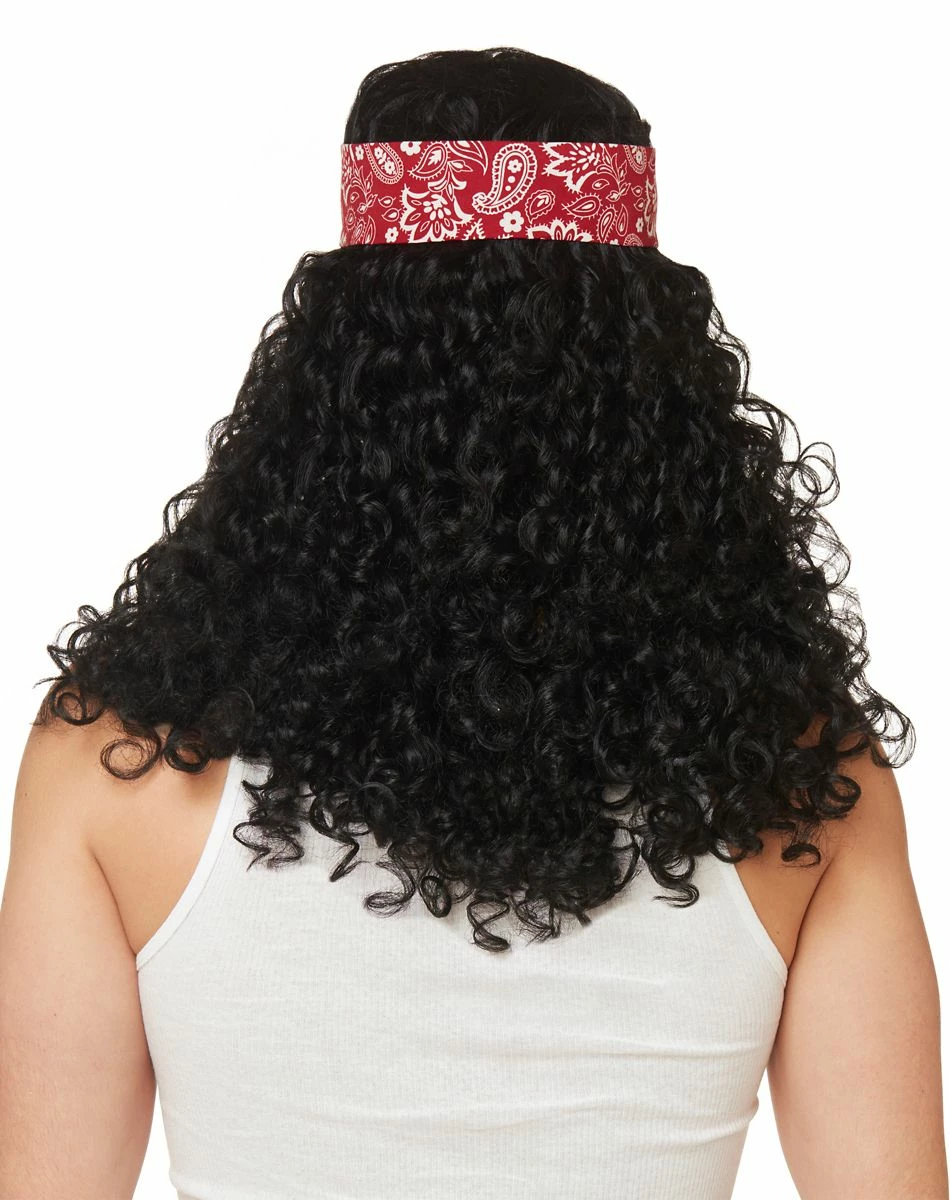 There’s a lot to compete about – winner takes all in the World’s Biggest Hair competition when you wear this long wavy black wig with bandanna. It takes a real man to wear this wig with a straight face.