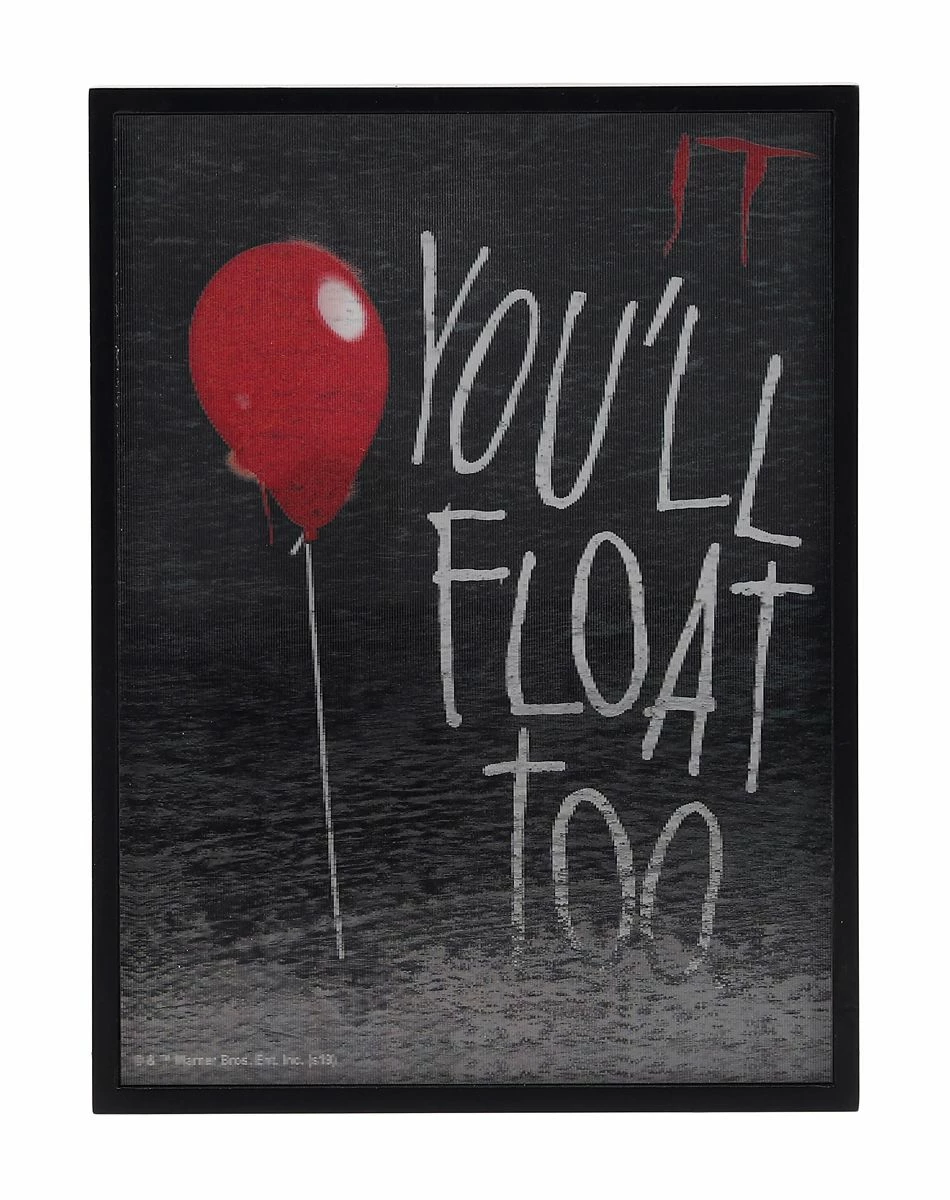Show off how much you love the horror movie It with this official “You’ll Float Too” 3D Frame. This dark frame features “You’ll Float Too” on the front and the iconic red balloon from the movie. This unique frame is a great collectible especially if you’re a fan of Pennywise the clown.